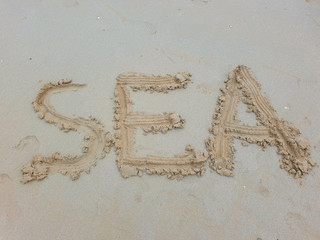 Love text on the beach.