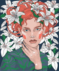 Grafika na ścianę - Kobieta, kwiaty - #178580783v