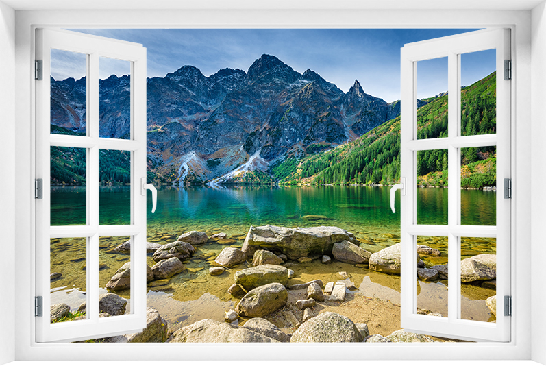 Fototapeta 3D Okno Krajobraz Góry Jezioro kr-359