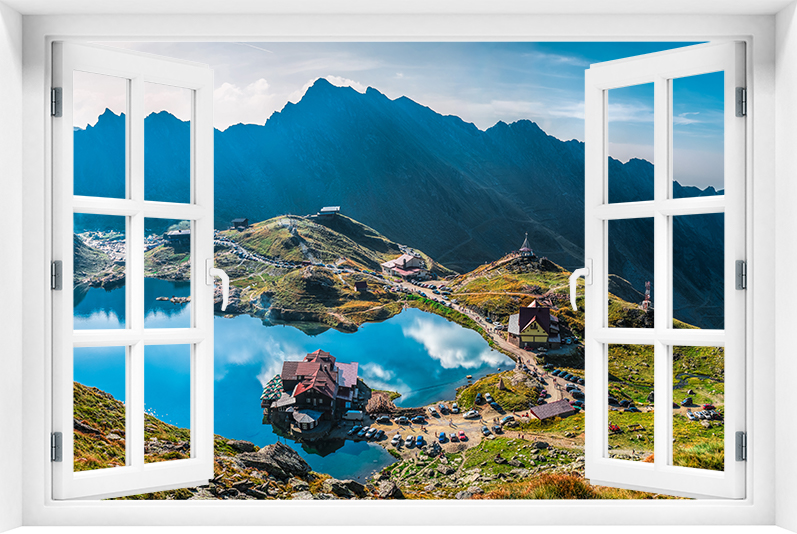 Fototapeta 3D Okno Krajobraz Góry Jezioro kr-360
