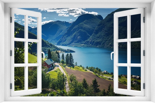 Fototapeta 3D Okno Krajobraz Góry kr-354