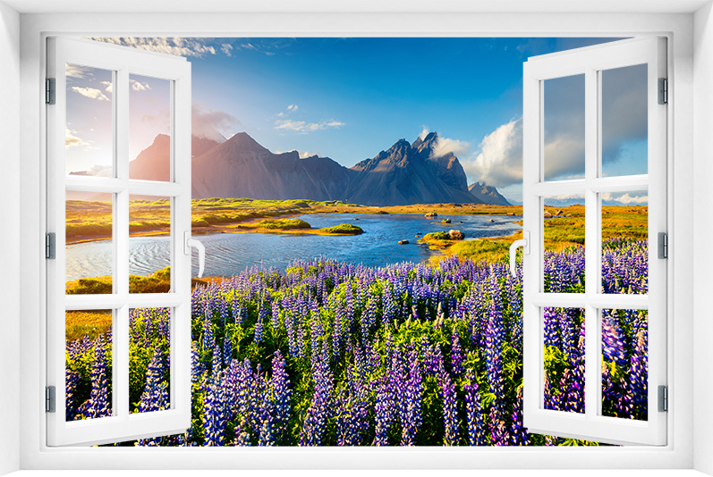 Fototapeta 3D Okno Krajobraz Góry Kwiaty kr-353