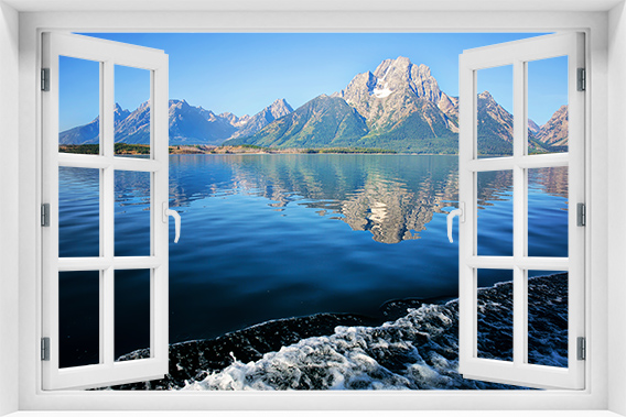 Fototapeta 3D Okno Krajobraz Jezioro Góry kr-267
