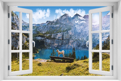 Fototapeta 3D Okno Krajobraz Jezioro Góry kr-273