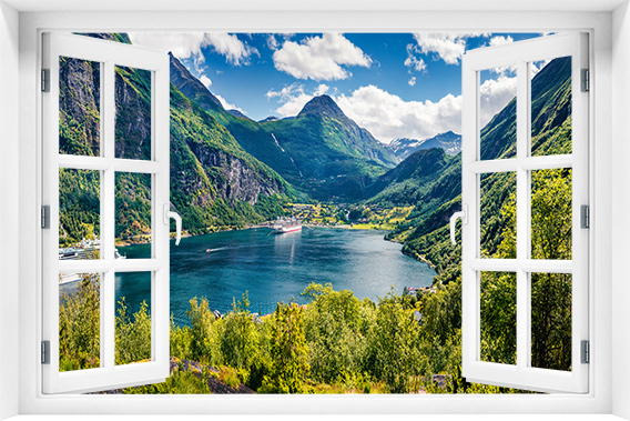 Fototapeta 3D Okno Krajobraz Jezioro Góry kr-295