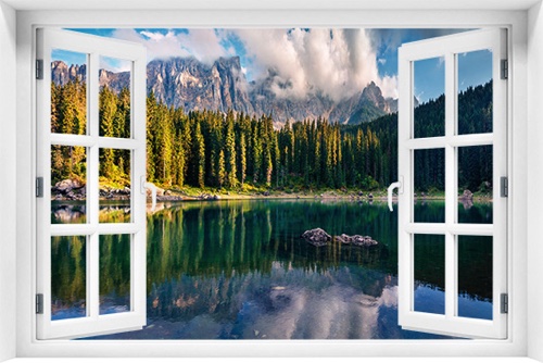Fototapeta 3D Okno Krajobraz Jezioro Góry kr-296