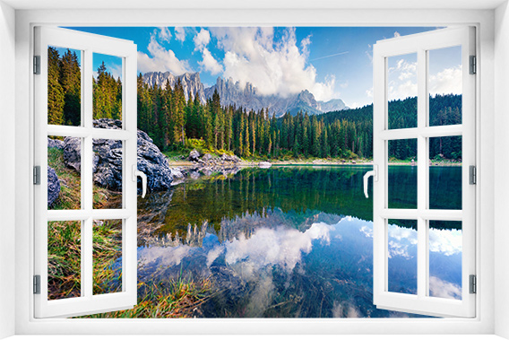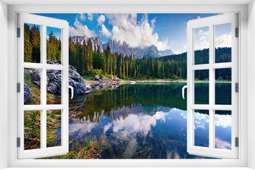 Fototapeta 3D Okno Krajobraz Jezioro Góry kr-297