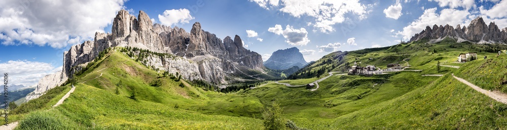 Passo Gardena z drogą do Passo Sella, panorama górski widok - #5383
