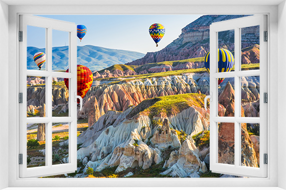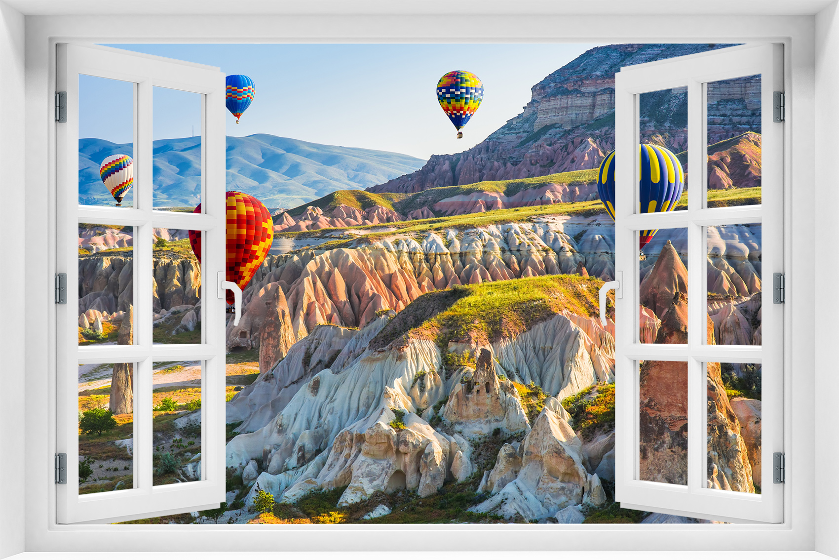 Fototapeta 3D Okno Krajobraz Balony - kr-457