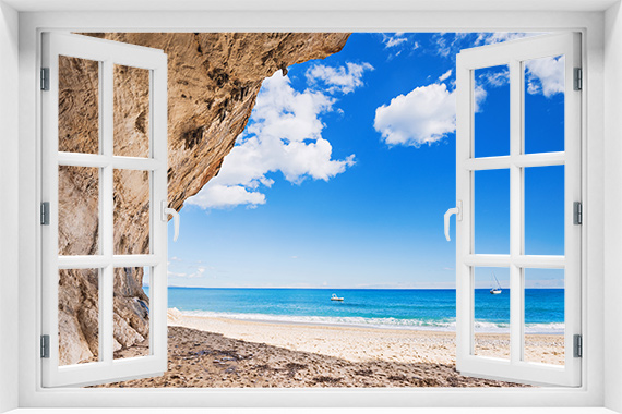 Fototapeta 3D Okno Krajobraz Morze Plaża - kr-408