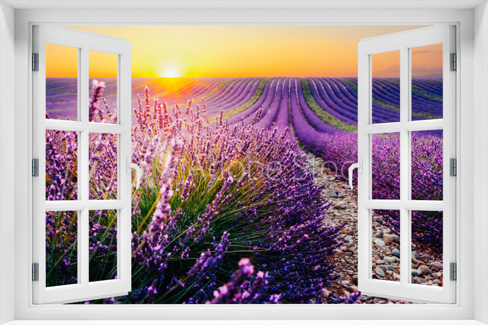 Fototapeta 3D Okno - Zachód Słońca - Wrzosy - #322631538