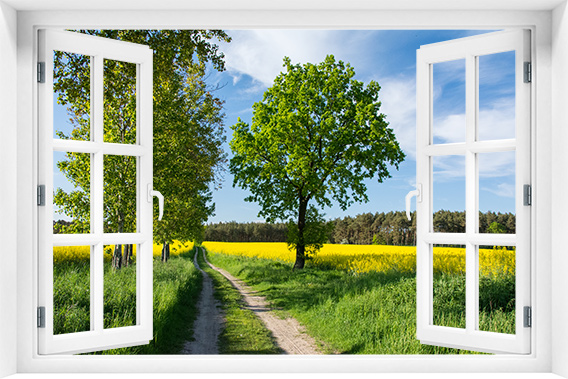 Fototapeta 3D Okno Krajobraz Drzewa Droga kr-322
