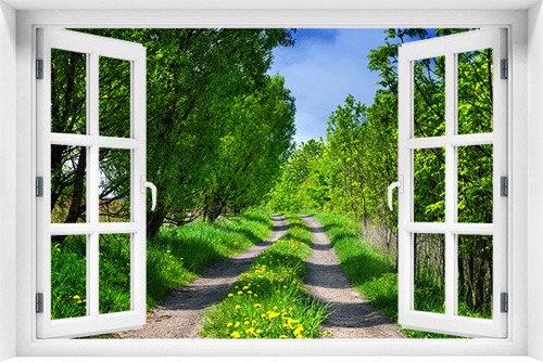 Fototapeta 3D Okno Krajobraz Las Droga kr-316