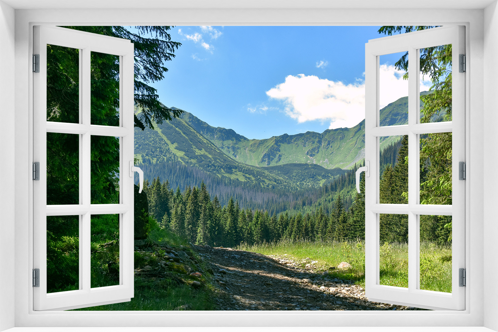 Fototapeta 3D Okno Krajobraz Las Drzewa Góry - kr-427