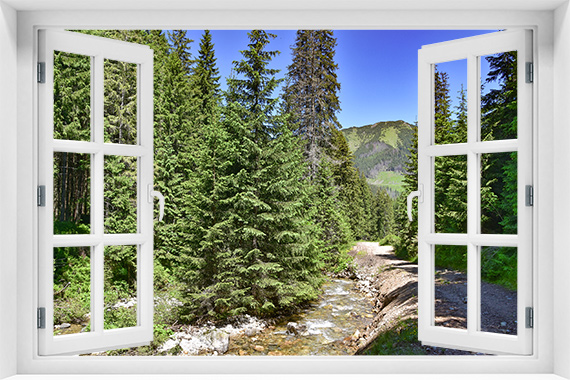 Fototapeta 3D Okno Krajobraz Las Drzewa Góry - kr-428