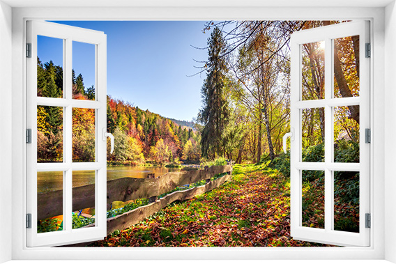 Fototapeta 3D Okno Krajobraz Las Jezioro kr-311