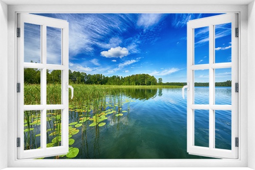 Fototapeta 3D Okno Krajobraz Las Jezioro kr-318