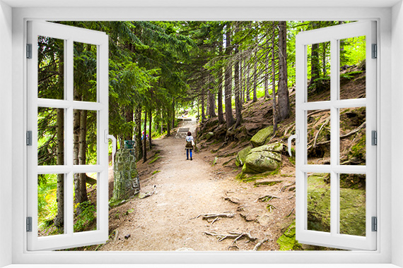 Fototapeta 3D Okno Krajobraz Natura Las Drzewa - kr-437