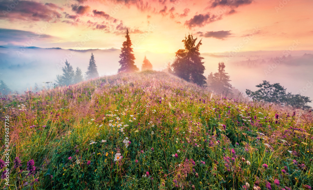 Kolorowa Mglista łąka, piękne kwiaty - #6087