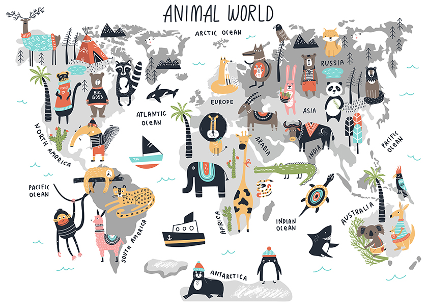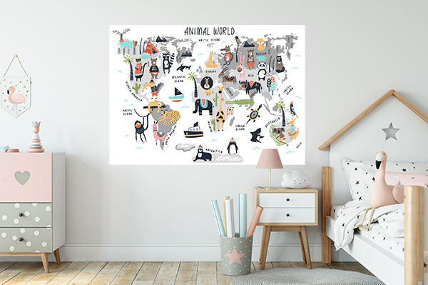 Mapa świata dla dzieci, zwierzątka, styl skandynawski - #5455