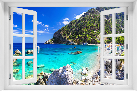 Fototapeta 3D Okno Krajobraz Morze Plaża - kr-461