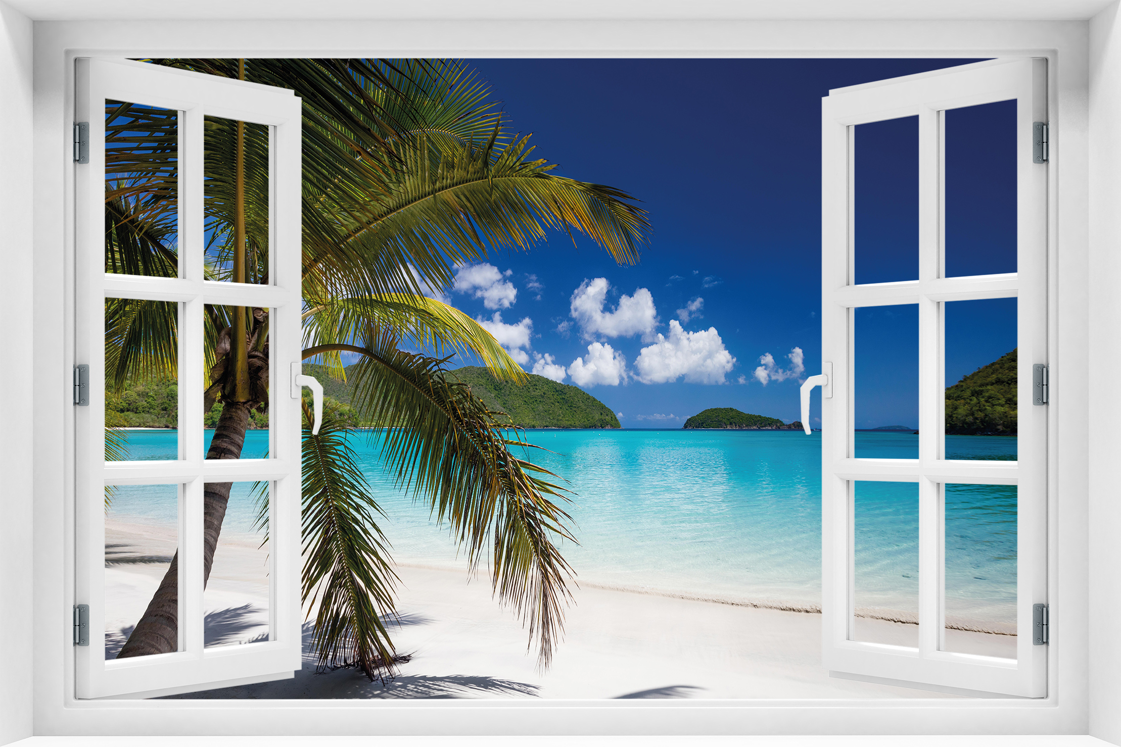 Fototapeta 3D Okno Natura Plaża Wakacje Palmy - p-36