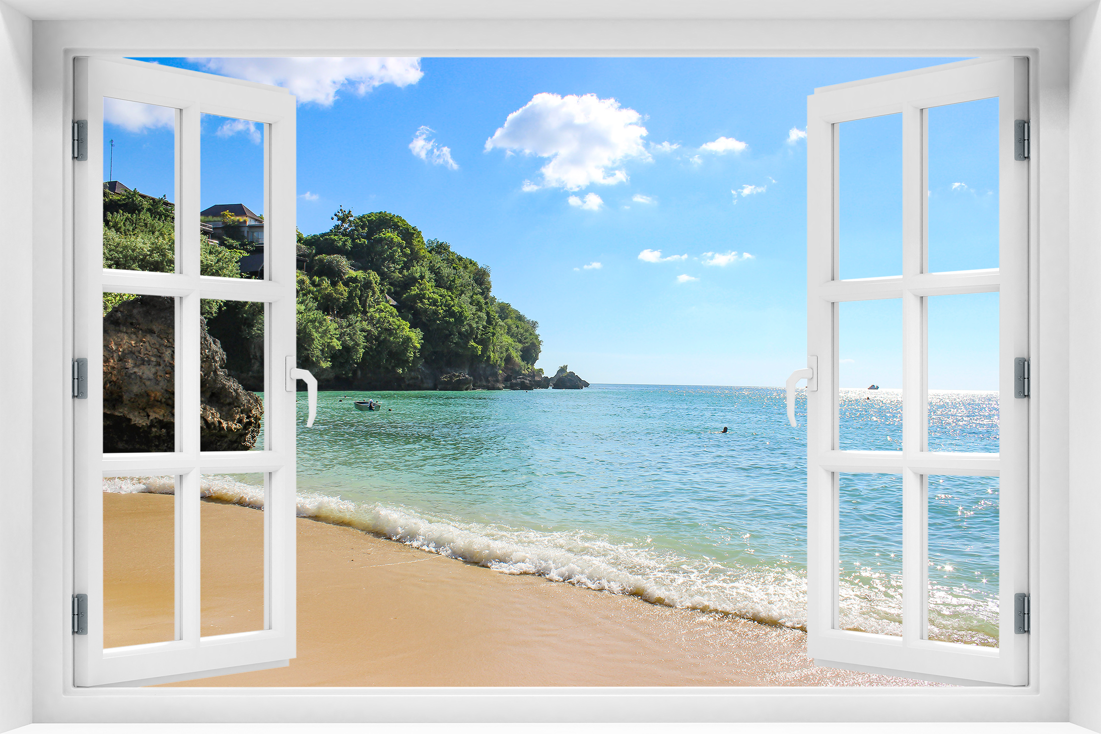 Fototapeta 3D Okno Natura Plaża Wakacje Palmy - p-38