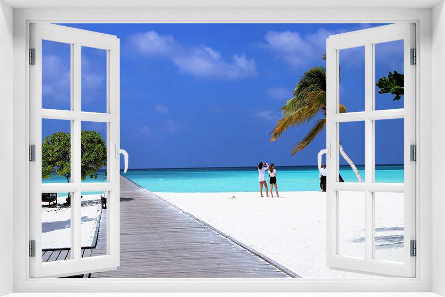 Fototapeta 3D Okno Natura Plaża Wakacje Palmy - p-45