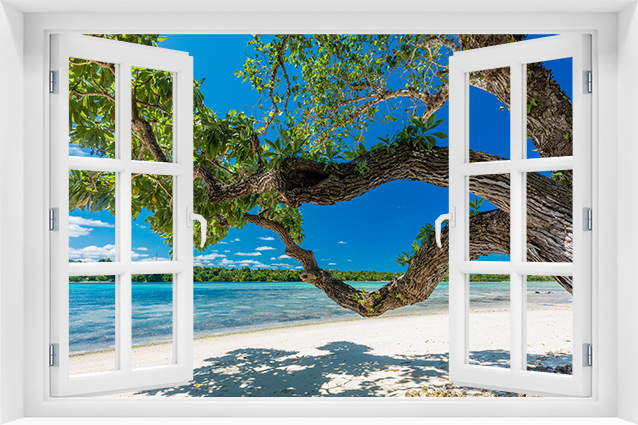 Fototapeta 3D Okno Natura Plaża Wakacje Palmy - p-53