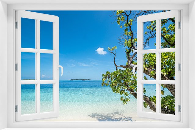 Fototapeta 3D Okno Natura Plaża Wakacje Palmy - p-54