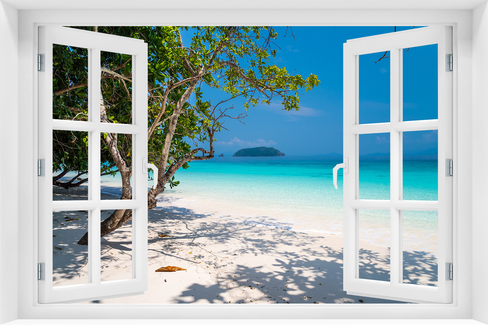 Fototapeta 3D Okno Natura Plaża Wakacje Palmy - p-55