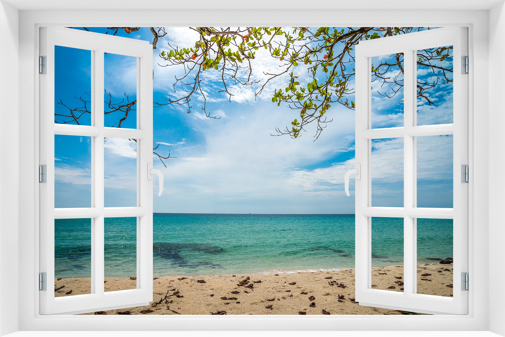 Fototapeta 3D Okno Natura Plaża Wakacje Palmy - p-58