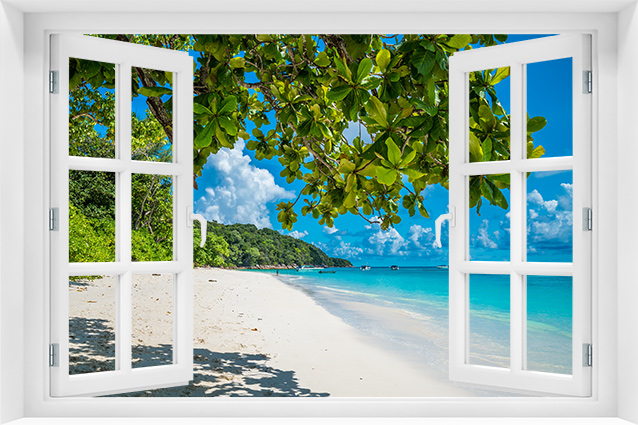Fototapeta 3D Okno Natura Plaża Wakacje Palmy - p-65