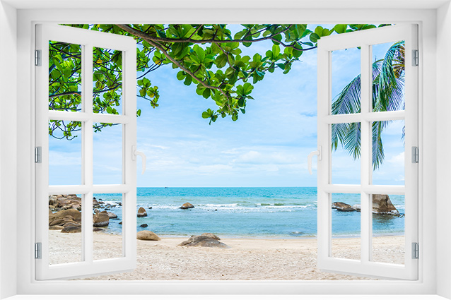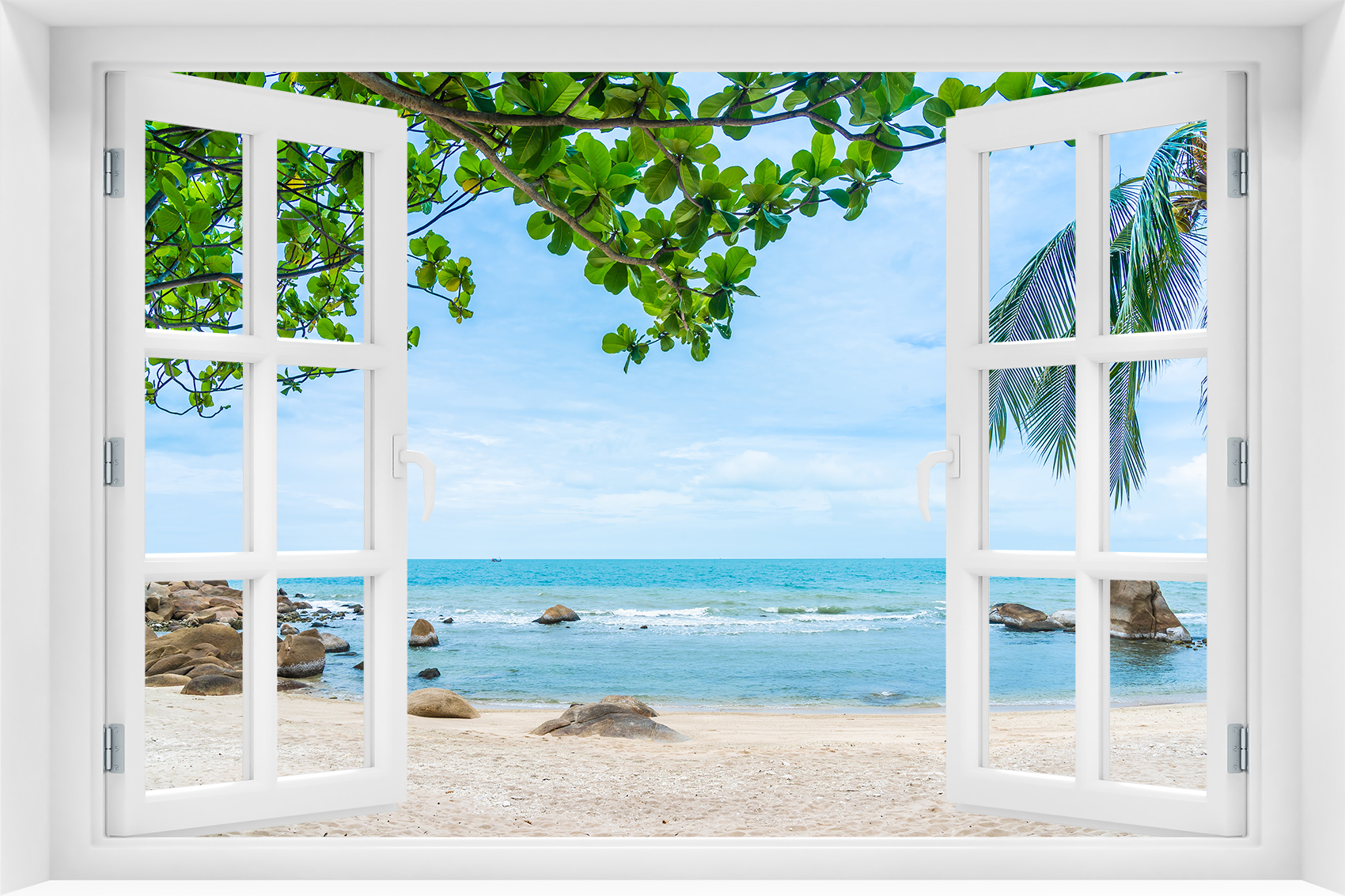 Fototapeta 3D Okno Natura Plaża Wakacje Palmy - p-70