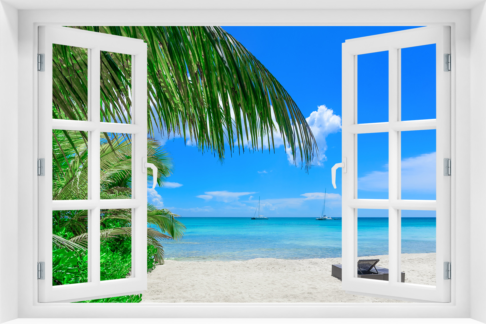 Fototapeta 3D Okno Natura Plaża Wakacje Palmy - p-74