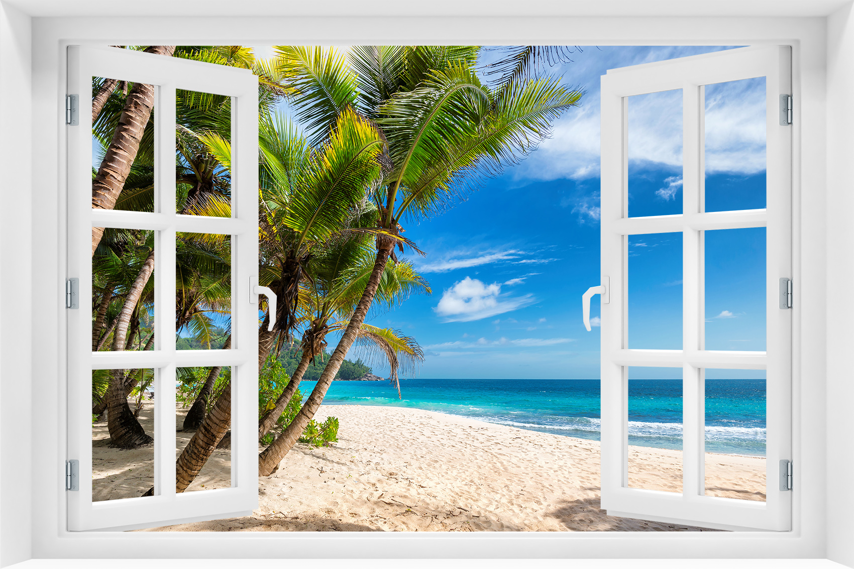 Fototapeta 3D Okno Natura Plaża Wakacje Palmy - p-83