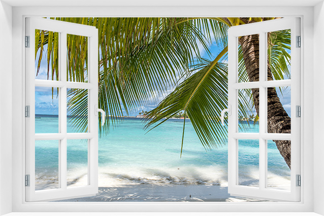 Fototapeta 3D Okno Natura Plaża Wakacje Palmy - p-90