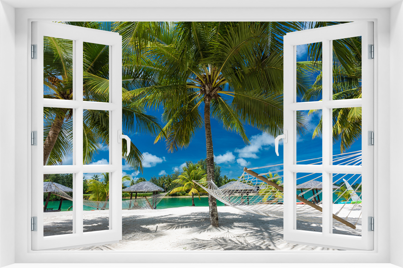 Fototapeta 3D Okno Natura Plaża Wakacje Palmy - p-94