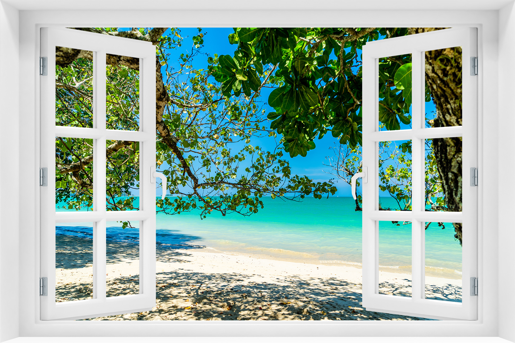 Fototapeta 3D Okno Natura Plaża Wakacje Palmy - p-95
