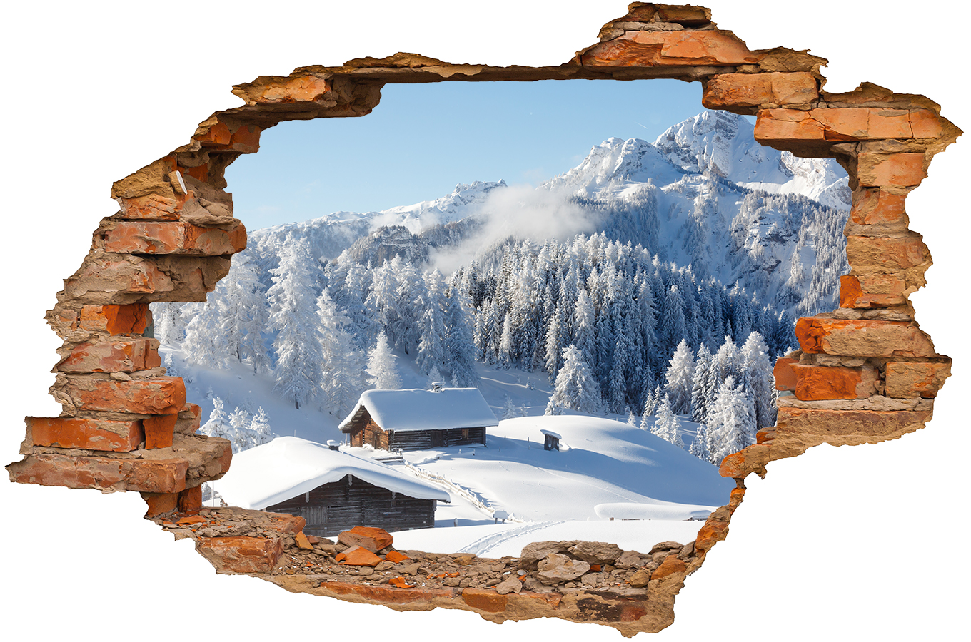 Dziura w ścianie, efekt 3D, zimowy krajobraz - d-krz-14