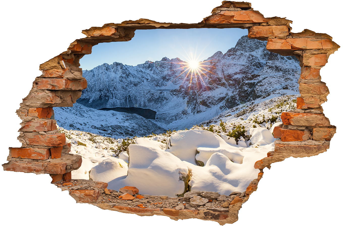 Dziura w ścianie, efekt 3D, zimowy krajobraz - d-krz-16