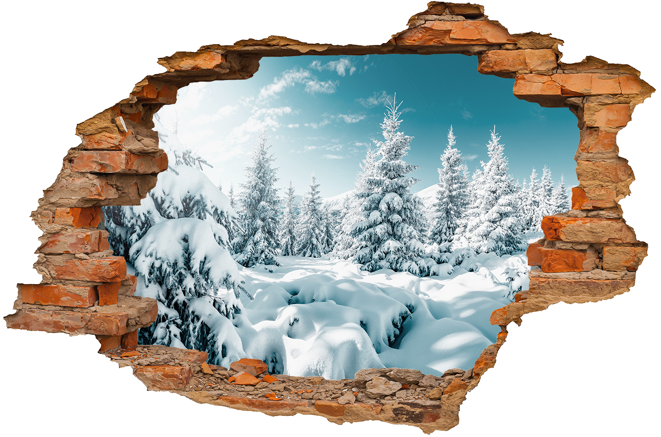 Dziura w ścianie, efekt 3D, zimowy krajobraz - d-krz-23