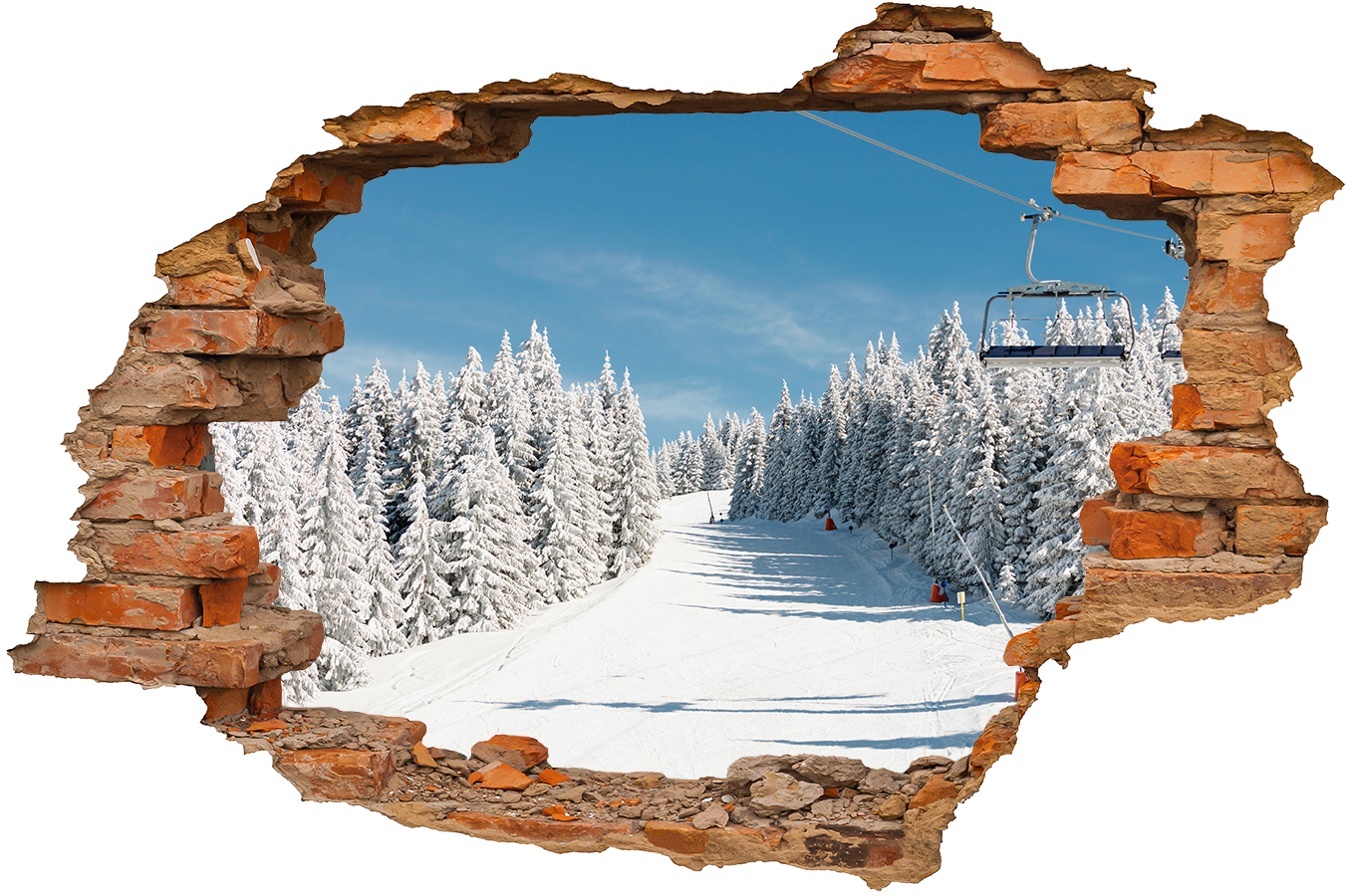 Dziura w ścianie, efekt 3D, zimowy krajobraz, stok narciarski - d-krz-28
