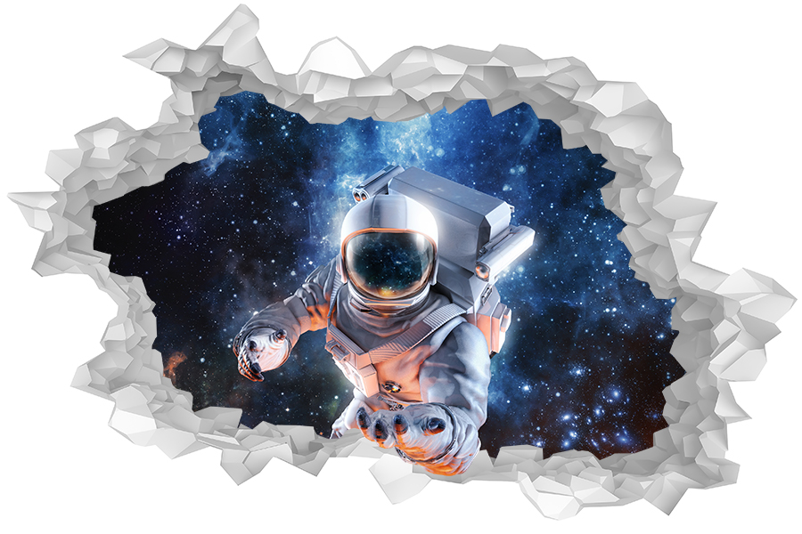 Interesujący obraz w formie otworu w ścianie 3d - obraz wycięty po obrysie dziury.