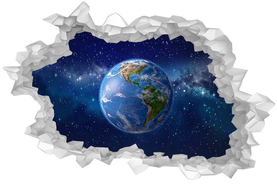 Interesujący obraz w formie otworu w ścianie 3d - obraz wycięty po obrysie dziury.