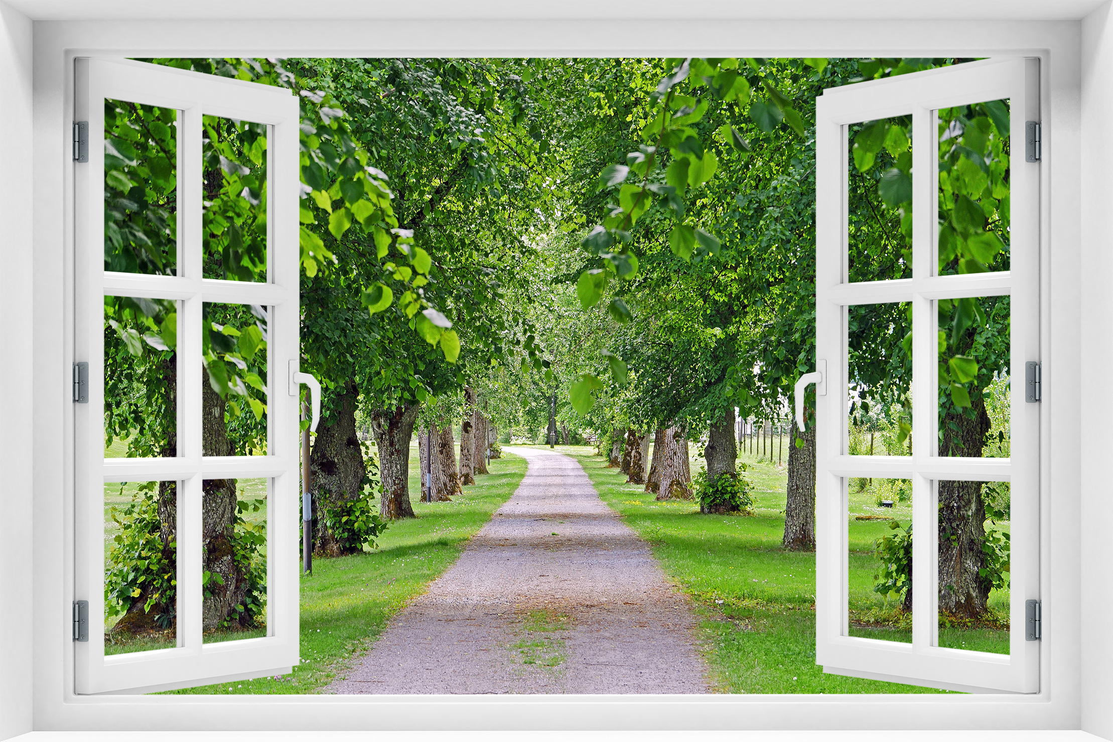 Fototapeta 3D Okno Krajobraz Drzewa Park - kr-208