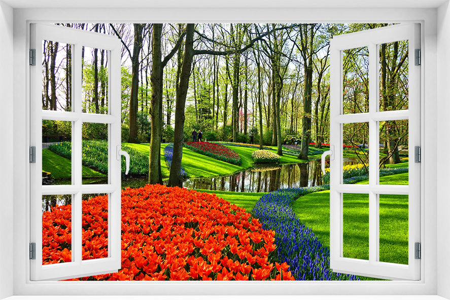 Fototapeta 3D Okno Krajobraz Drzewa Park - kr-209