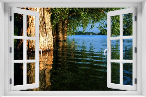 Fototapeta 3D Okno Krajobraz Jezioro kr-264
