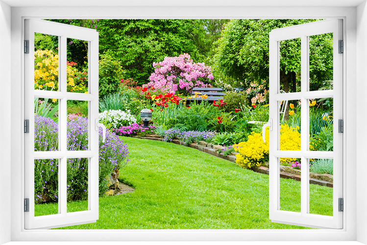 Fototapeta 3D Okno Krajobraz Ogród kr-333