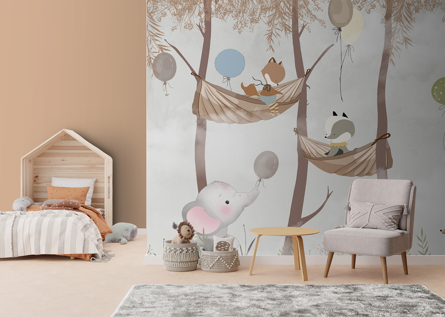 Tapeta hamaki wesołe zwierzątka boho #7838